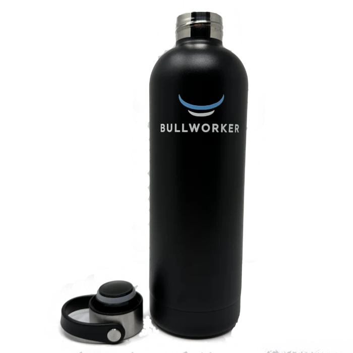 The stainless steel insulation keeps beverages cold up to 24 hours and hot up to 12 hours. The flask is made with professional-grade stainless steel to ensure durability, pure taste and no flavor transfer. The flask is leakproof when closed for transporting liquids without worry. The flask has a rubber-arch-strap on the cap so the flask is easy to transport and comfortable to carry. The cap has been designed for maximum temperature retention. The sexy Midnight Black and Laguna Blue durable powder coat is dishwasher safe, keeping your bottle slip-free and sleek. The Bullworker Stainless Steel Flask is cup holder friendly.